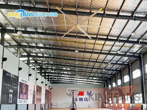 大范圍覆蓋: 籃球場館大吊扇擁有超長葉片(可達7.3米),能夠產生廣泛的氣流覆蓋面,為大型倉庫或生產廠房屋頂等大面積空間提供高效的通風效果。